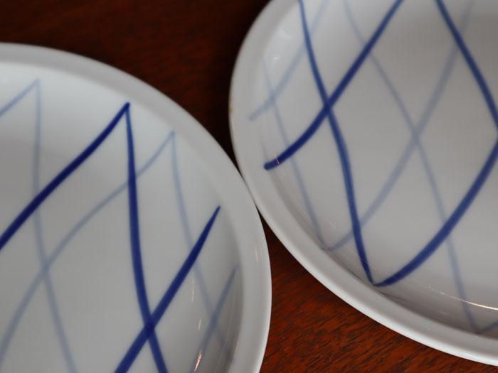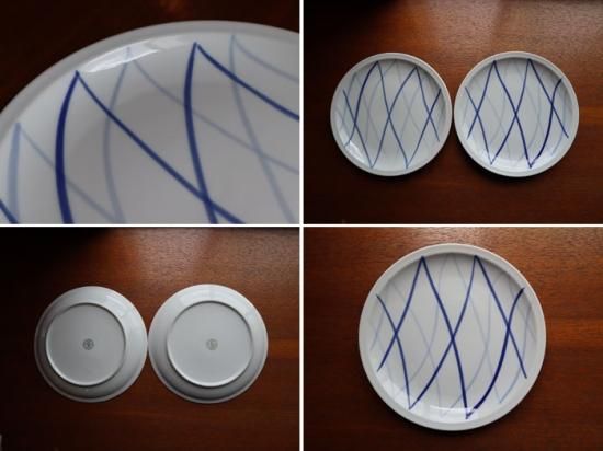 大胆に施されたハンドペイントのブルーラインが特徴的なプレート。