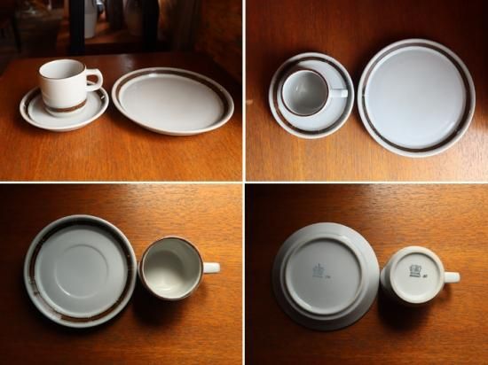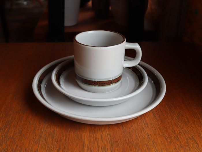 レンガ色のラインがかわいい。カップ・ソーサー・プレートの3点セット