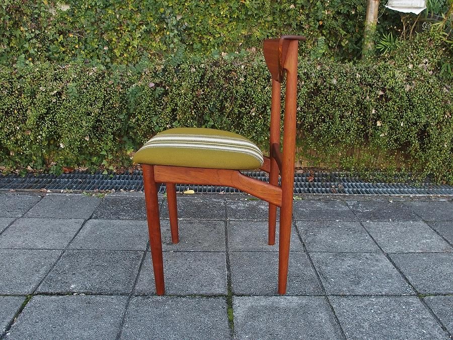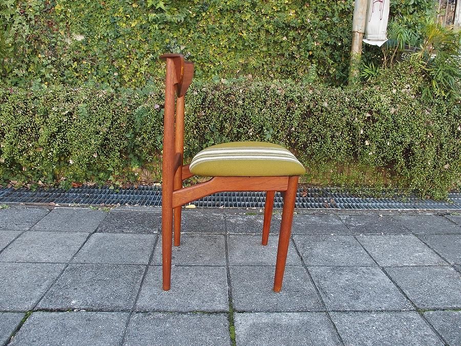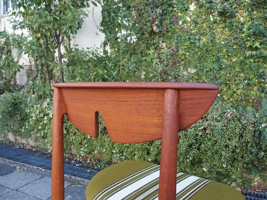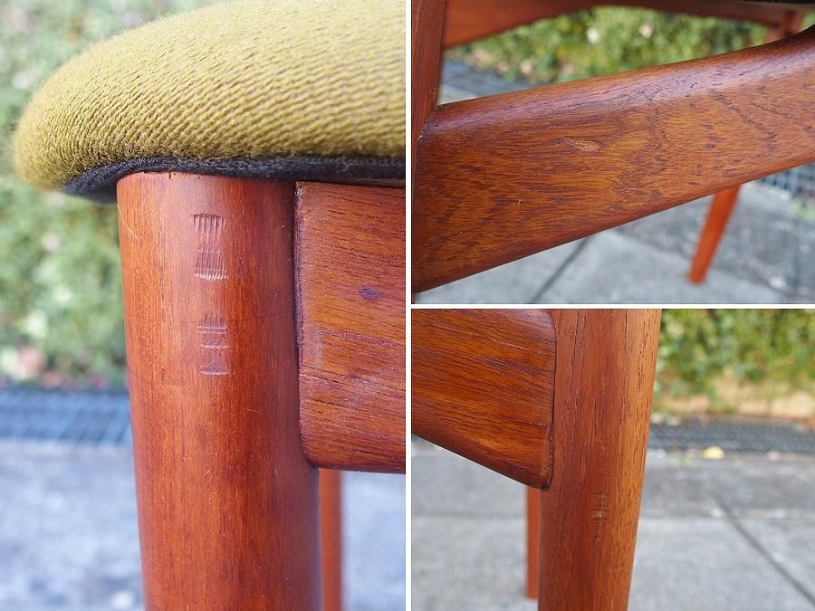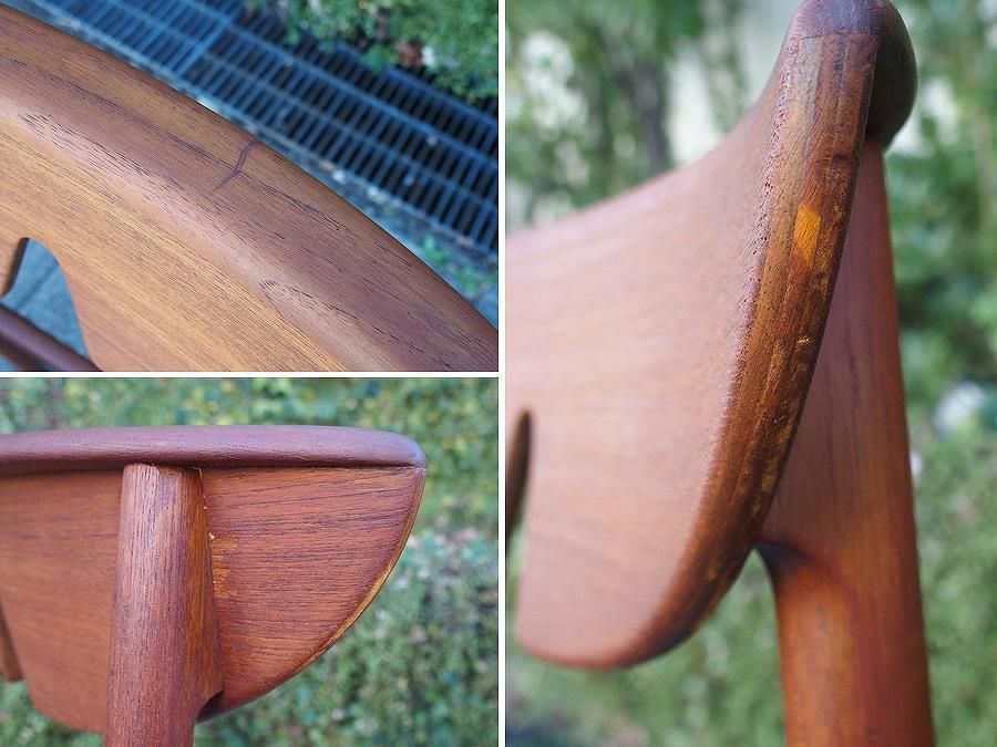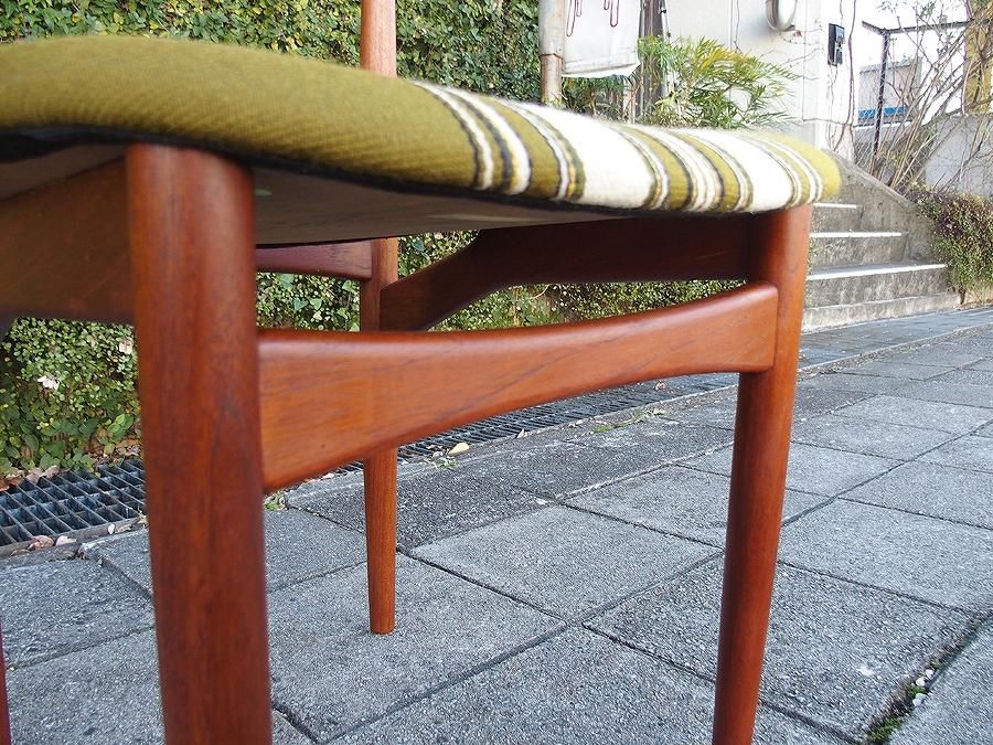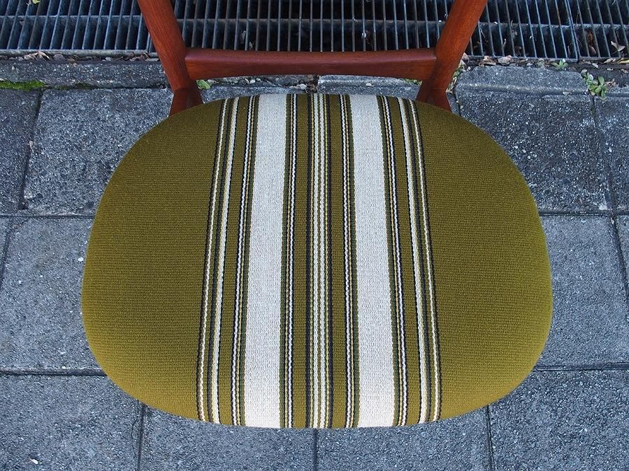 メンテナンス内容 木部:接合部のうち、ゆるみの確認できる部分の留め直し。古い塗装を剥離後再塗装。 座面:デッドストックデンマークウールファブリックにて張替え。ウレタン入替え。