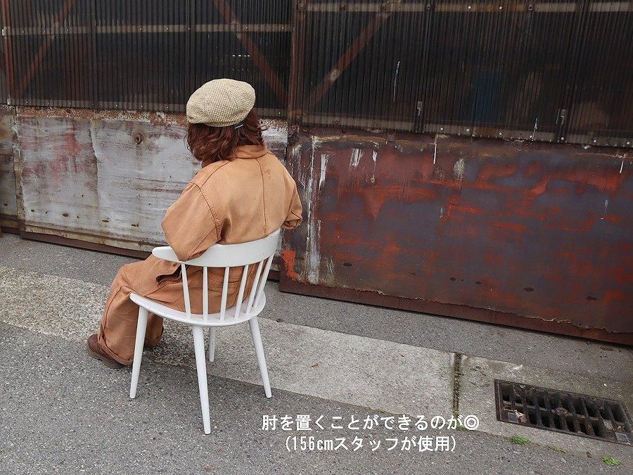 当店では人気の肘が載せられるハーフアームチェア。どかっと座ってもたれるとアールが身体に沿ってくれます。