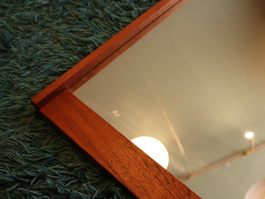 溝の入った縦材にミラーを挟み込み横材で蓋をした作りになっています。