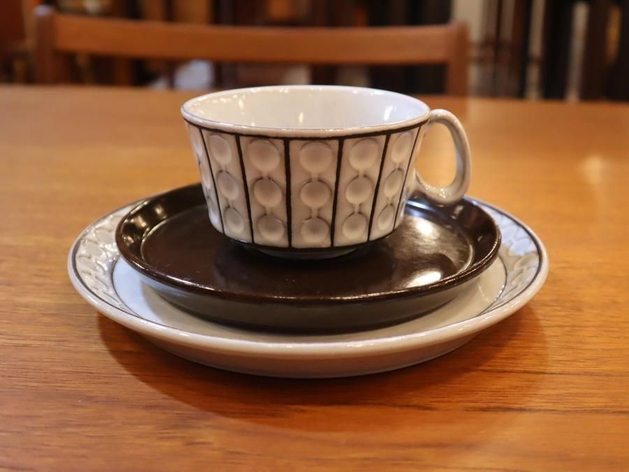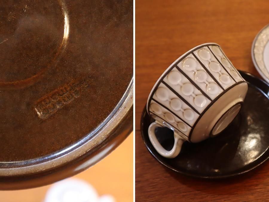 深いこげ茶のソーサーが落ち着いた印象もありつつ、まあるい模様とラインが印象的でとてもかわいらしいです。