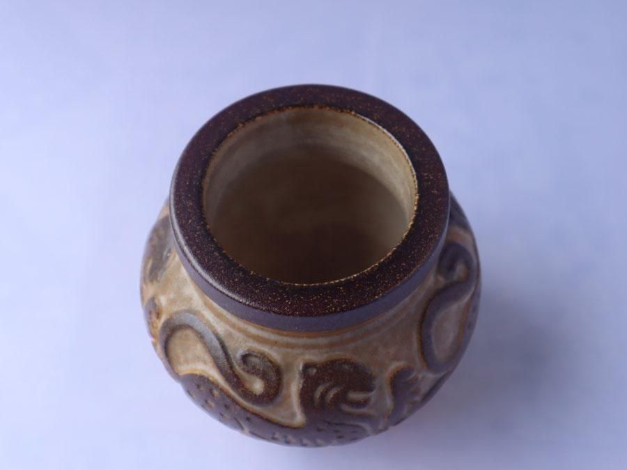 サイズ:上部直径 9cm、胴周り 12cm、底径 7cm、高さ11.9cm