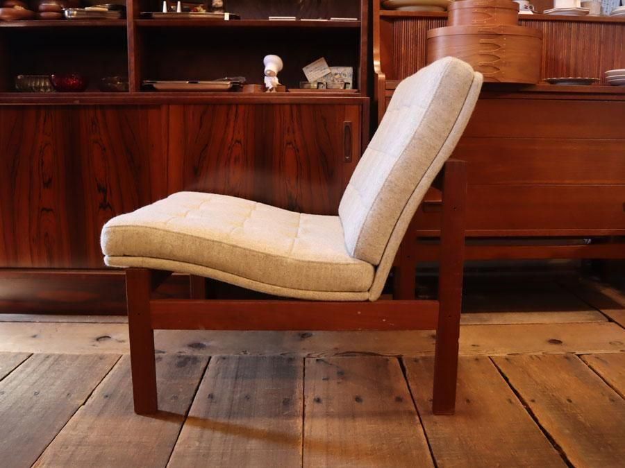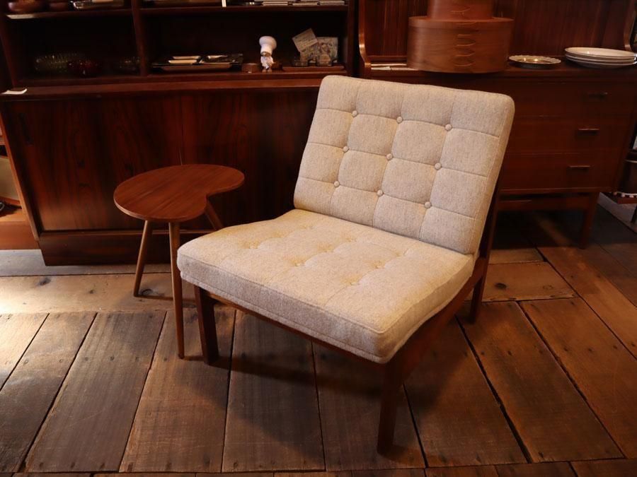 メンテナンス内容(予定) 木部:接合部のうち、ゆるみの確認できる部分の留め直し。古い塗装を剥離後再塗装。 ファブリック部:デッドストックデンマーク製ウール生地にて張替済み。ウレタン入替済み。
