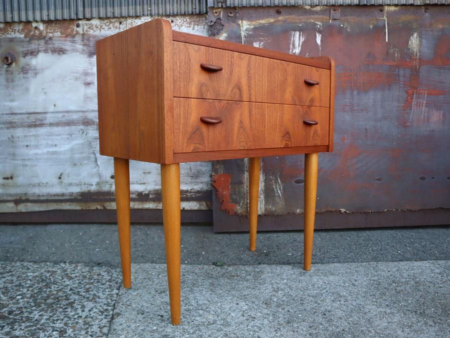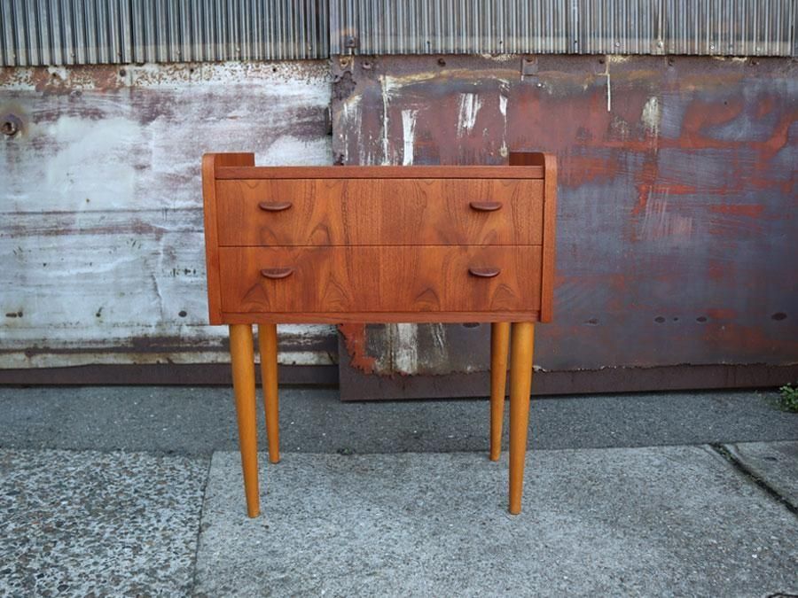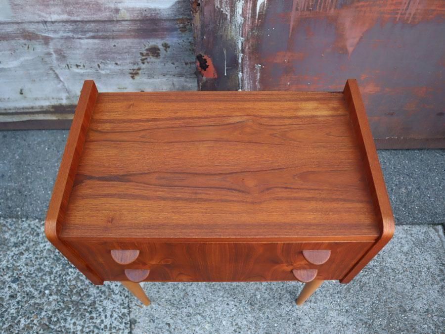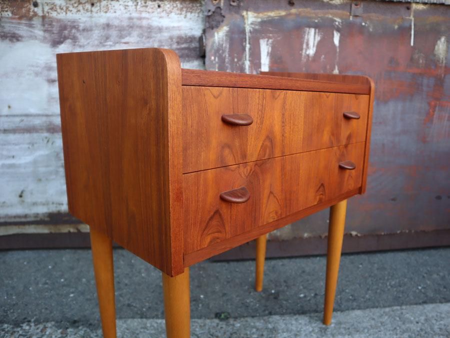 現代のチェストは基本、天板が横板の上に載っていますが、こちらのスモールチェストは、横板が天板の上に飛び出たデザイン。