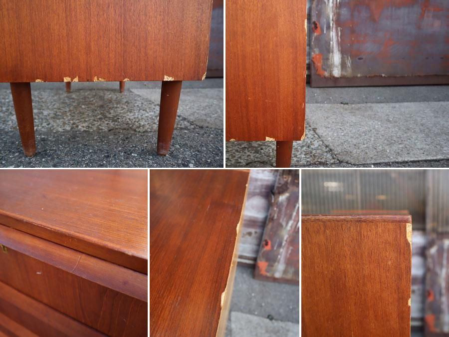 メンテナンスにより目立ちにくくなりますが、約60年前に製造された北欧ヴィンテージ家具のため、キズや修理跡がございます。