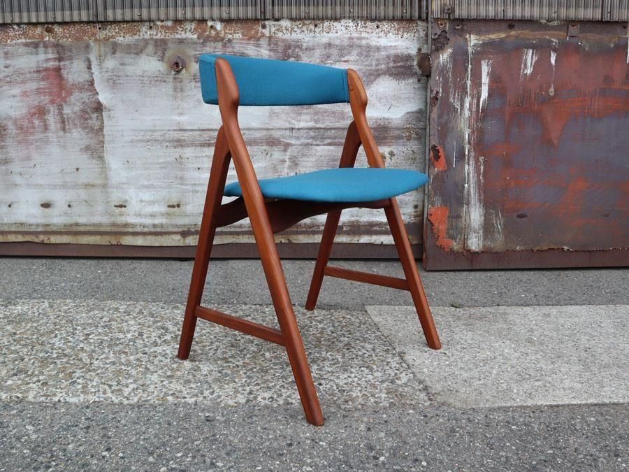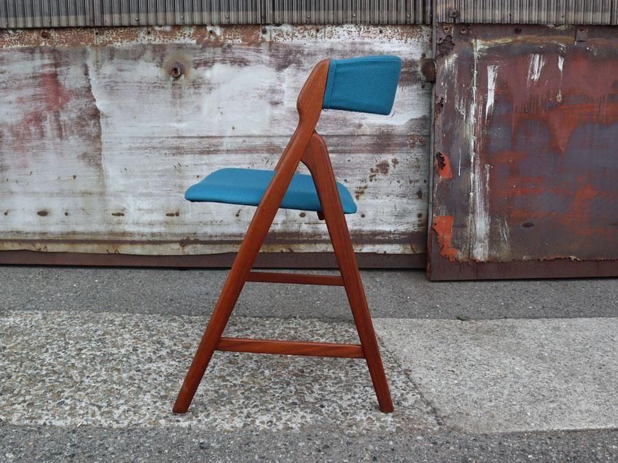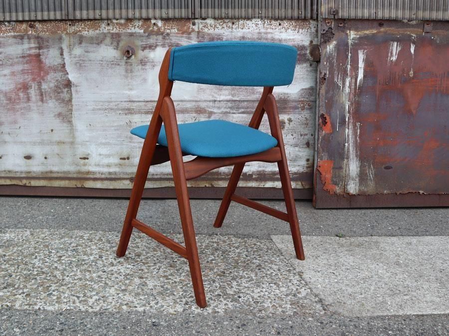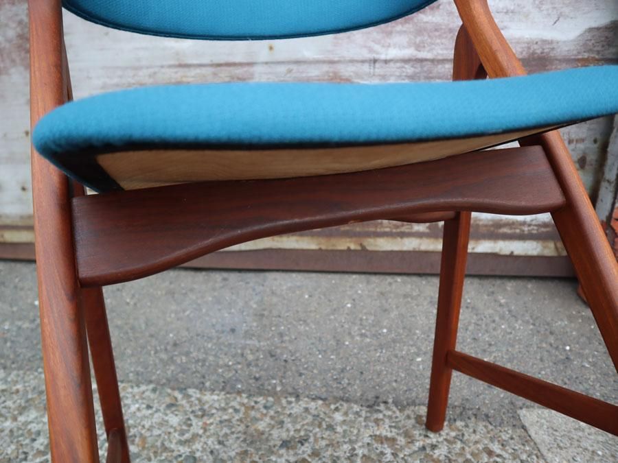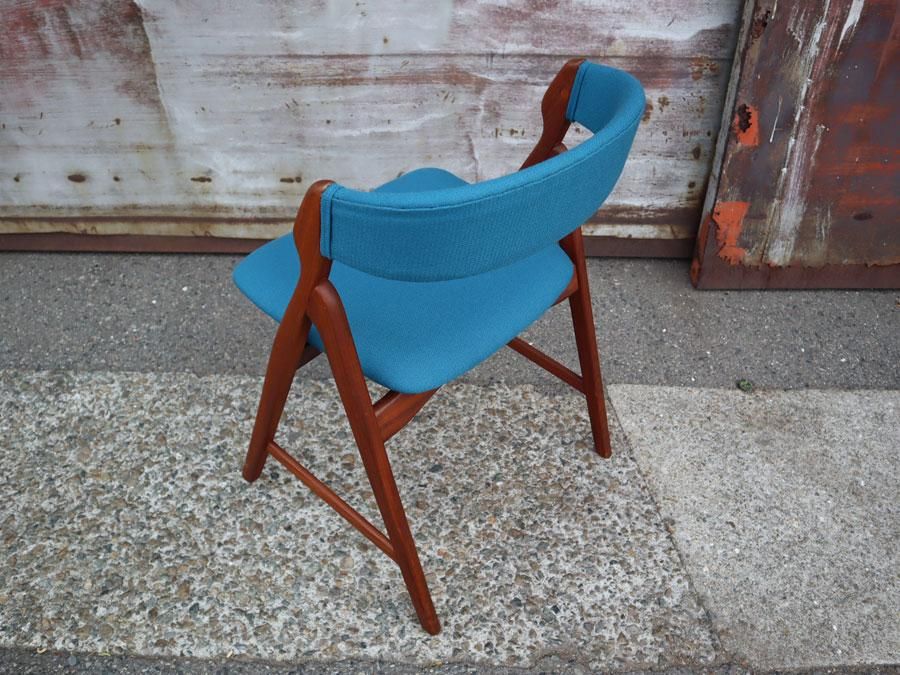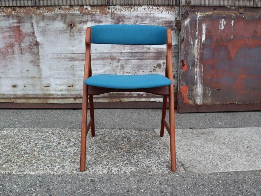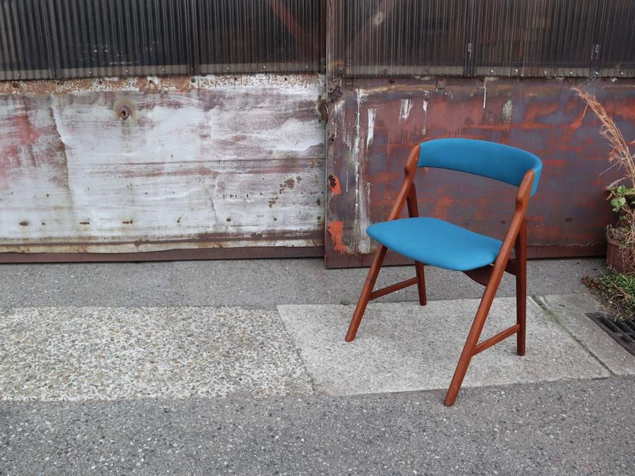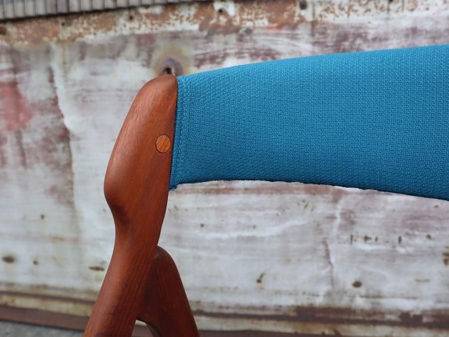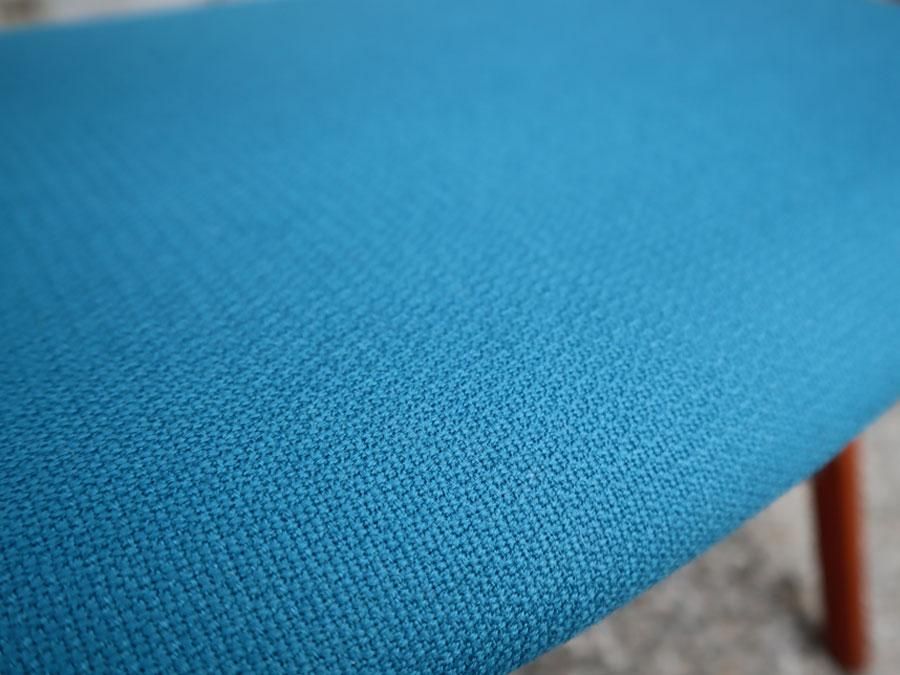 座面はデンマークより輸入したデッドストックのブルー生地にて張替をいたしました。
